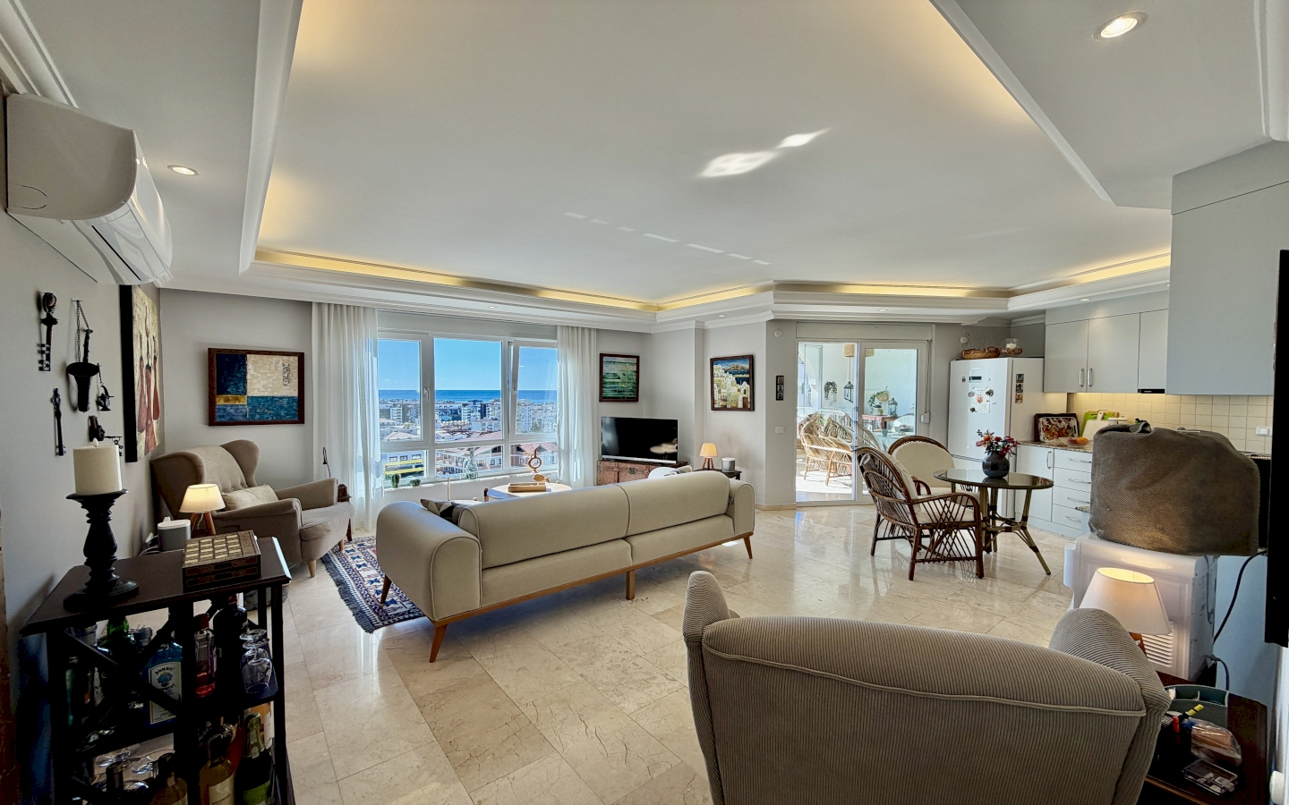 Denne 2+1-lejlighed i Ocean View Alkale skiller sig ud på Alanyas ejendomsmarked med sin sydvendte orientering, havudsigt, fuld møblering og kompleksets rige faciliteter. Trods opførselåret 2006 har ejendommen bevaret sin kvalitet og levestandard og repræsenterer en af de sjældne muligheder, der egner sig både som primær bolig og som højtforrentende udlejningsinvestering.
