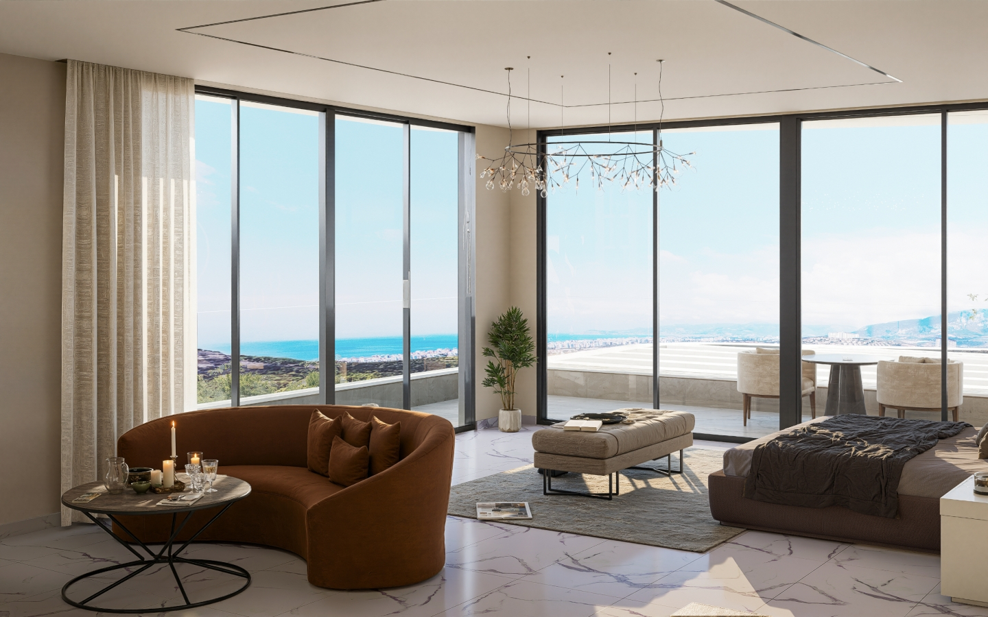 Наслаждайтесь непрерывным видом на Средиземное море с любого уровня виллы. Панорамные окна от пола до потолка позволяют любоваться захватывающими закатами и природной красотой прямо из дома.