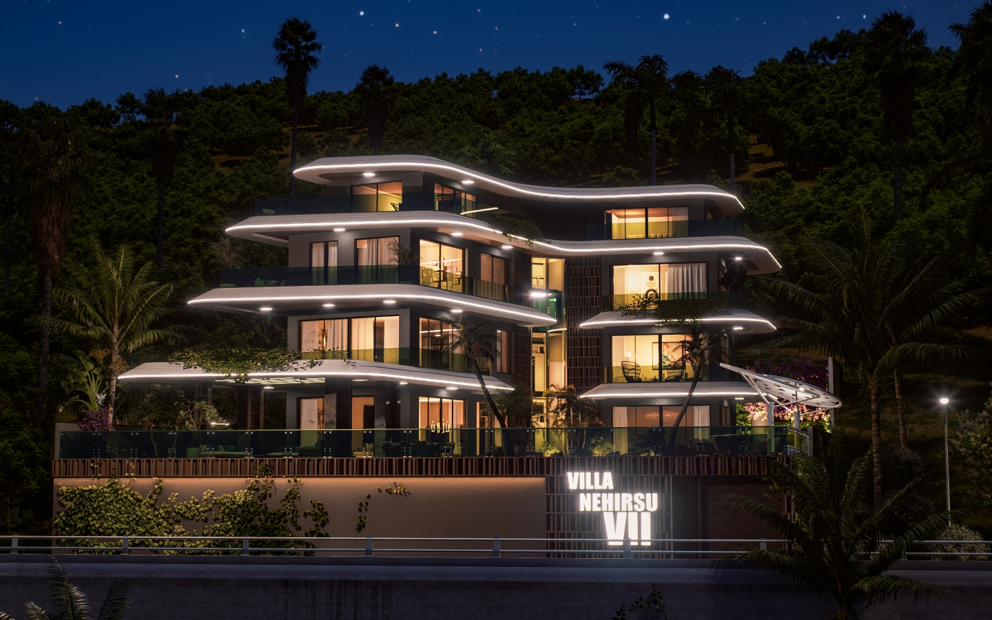 Отдельно стоящая вилла 4 этажа, планировка 7+2, оснащена лестницей с галерейным пространством, которая наполняет интерьер естественным светом и создаёт ощущение простора. Каждый этаж продуман для максимального комфорта, уединения и элегантности.