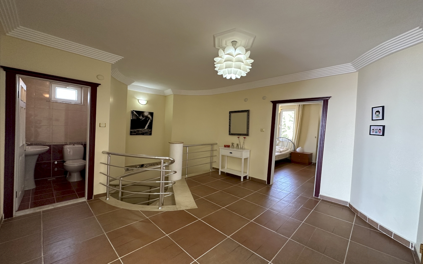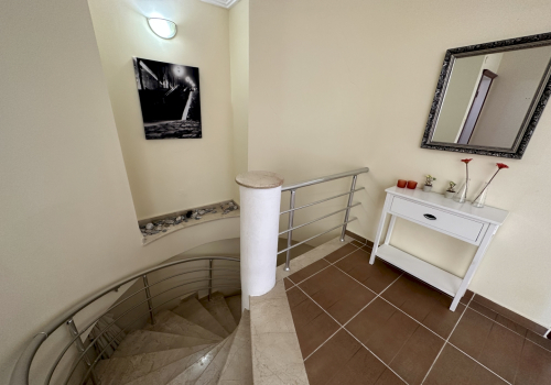 Indretningens planløsning omfatter tre rummelige sovevær, hver designet til at give komfort og privathed til familiemedlemmer eller gæster. Hovedsoveverelset tilbyder en fredelig tilbagetrækning med dominerende Middelhavsudsigt. Yderligere sovevær er lige så velproprotioneret, hvilket gør denne ejendom ideel til store familier, fleregenerations-beboelse eller dem, der hyppigt huser natgæster. En velkom stueområde tjener som hjerte på residensen, der tilbyder rigeligt plads til familiesammenkomster, social underholdning og daglig afslapning. De generøse proportioner af alle rum afspejler kvalitetskonstruktion og omhyggelig design af denne enestår ejendom.