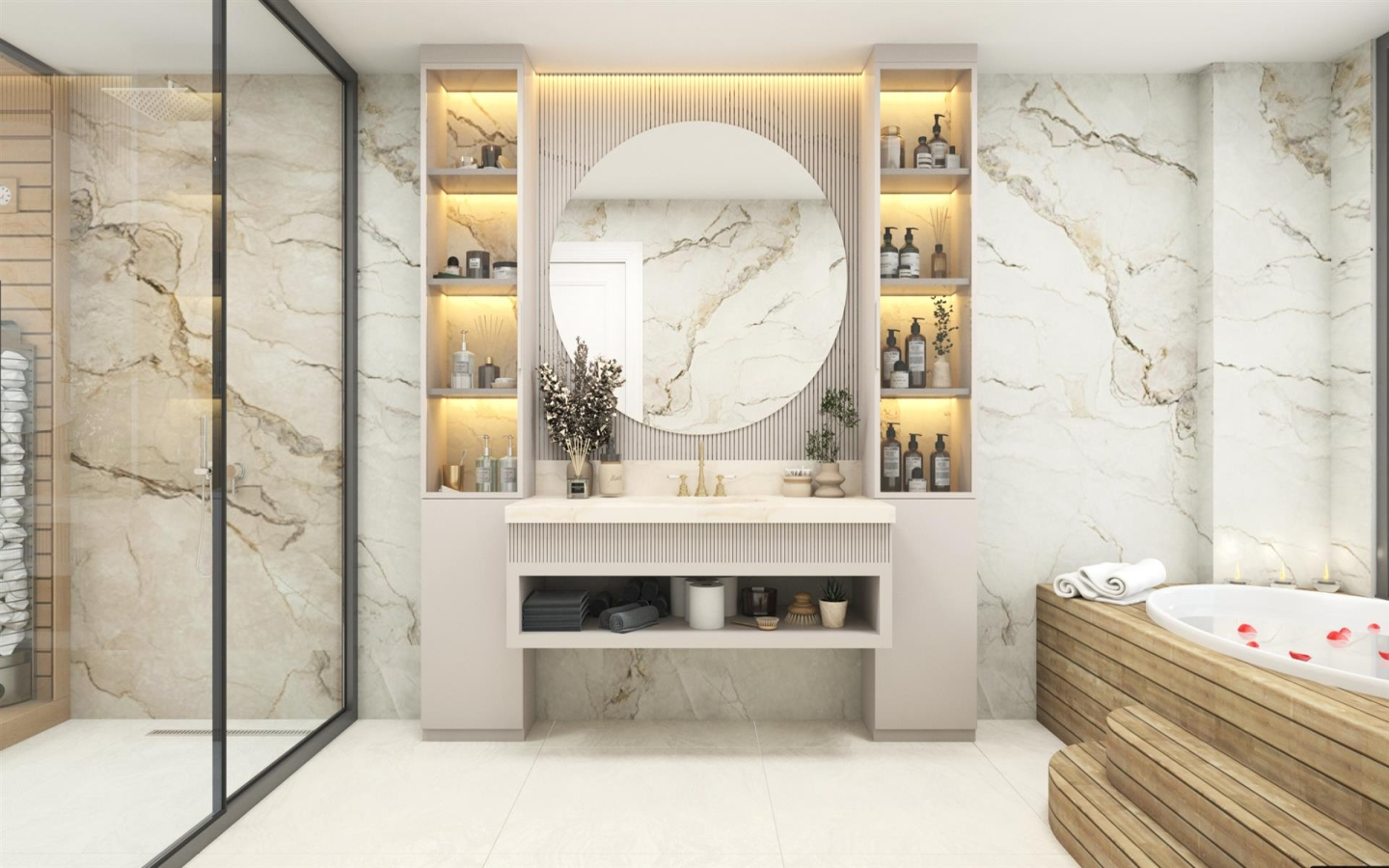 Projektet består af kun 18 selvstændige boligenheder fordelt på 6 blokke med 4 etager, hvilket sikrer en fredelig og privat atmosfære. Her tilbydes lejligheder, tagduplekser, haveduplekser samt fritstående private villaer. Indretningen kan tilpasses efter dine ønsker, herunder antal værelser og badeværelser.