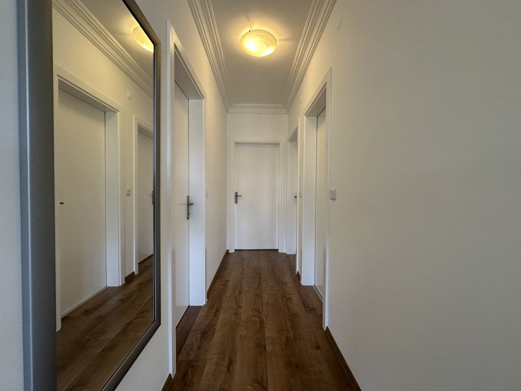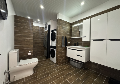 Lejligheden inkluderer to rummelige sovevær, hver designet til at give komfort og privathed til familiemedlemmer eller gæster. Begge sovevær drager fordel af naturligt lys gennem store vinduer og adgang til udendørsrum via altanerne. Hovedsoveverelset tilbyder en fredelig tilbagetrækning med rigeligt plads til møbler og personligt komfort. Det andet sovevær er lige så velproprotioneret, hvilket gør denne lejlighed ideel til familier med børn, fleregenerations-beboelse eller hyppige gæster. De generøse sovevær størrelser afspejler kvalitetskonstruktion og omhyggelig interiørdesign, der prioriterer beboers komfort og livsstilskvalitet.
