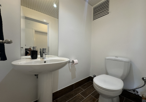 Lejligheden inkluderer ét fuldt badeværelse udstyret med moderne armatur og moderne design. Tildelingen af to separate toiletter giver yderligere bekvemmelighed og effektivitet, især værdifuldt i travle husstande eller når underholdningsmentalitet gæster. Denne konfiguration sikrer badeværelsesbekvemmelighed uden at kræve omfattende renovering, da separate toiletfaciliteter reducerer konflikter i daglige rutiner. Den separate toiletsstrategi er særlig værdsat af familier med flere medlemmer og demonstrerer omhyggelig rumplanlægning, der forbedrer daglig livivormgning praktikalitet.