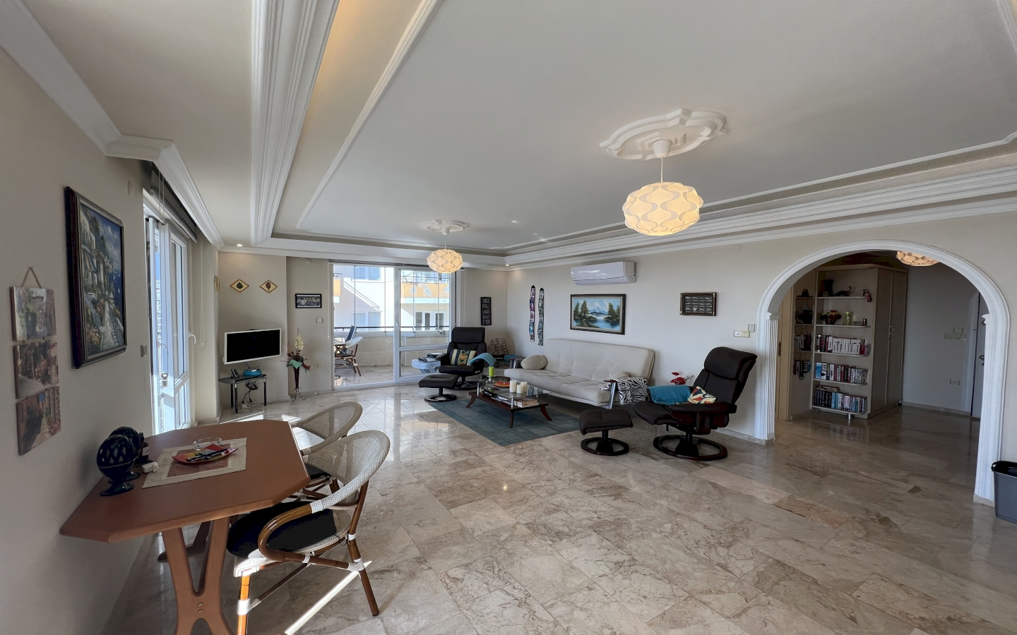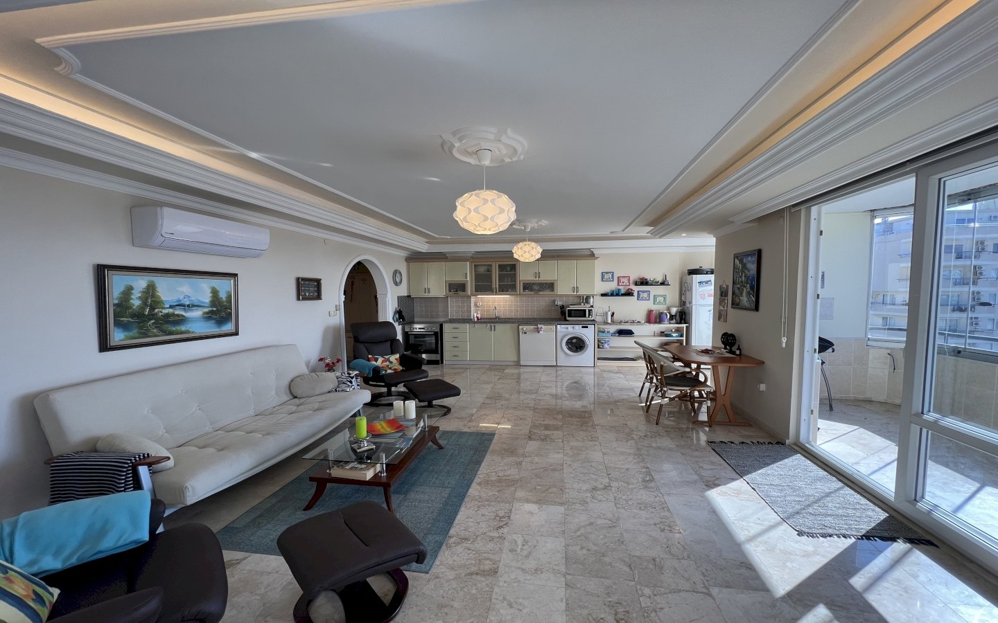 Lejligheden er på 125 kvm og sælges fuldt møbleret, som den ser ud på billederne (undtagen personlige ting).