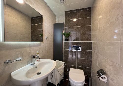 2 toiletter og 1 badeværelse.